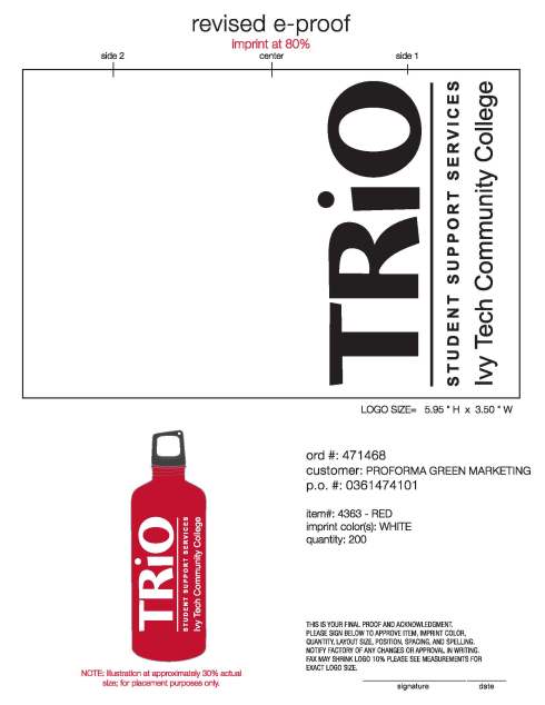 34 oz h2go 18/8 stainless steel water bottle Drinkware Project: Ivy Tech Community College TRIO, 04/27/2012