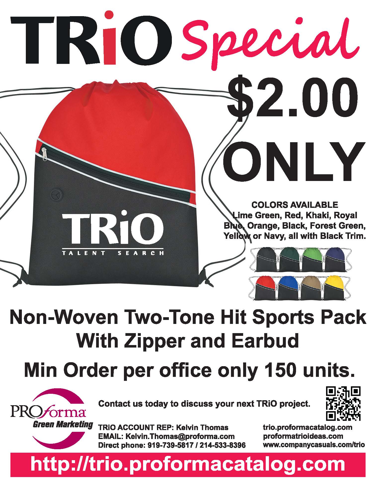 If you have any questions or wish to order, please email or call your Proforma TRiO representative Kelvin Thomas / 919-739-5817.