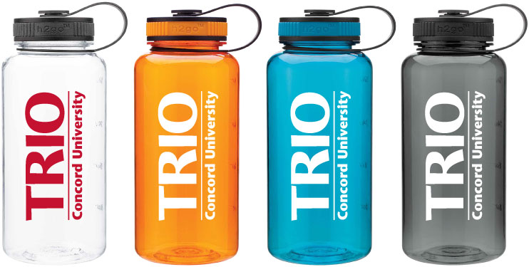 Drinkware ideas, 34 oz single wall (BPA free) Eastman Tritan copolyester bottle with two-tone threaded lid for Concord University, TRIO.