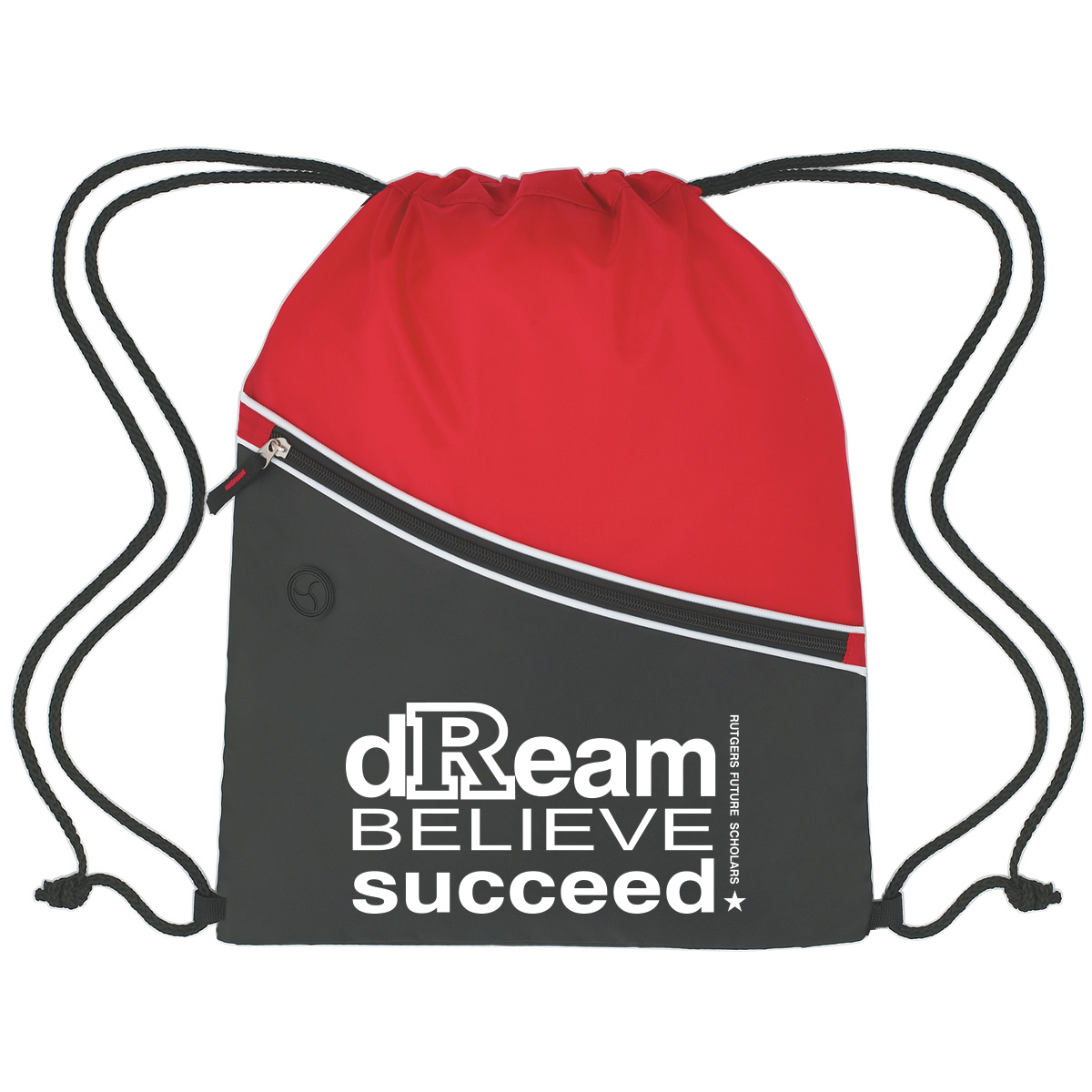 Made Of 210D Polyester. Built-In Slot For Ear Buds. Large Front Zippered Pocket. Drawstring Closure. Spot Clean/Air Dry