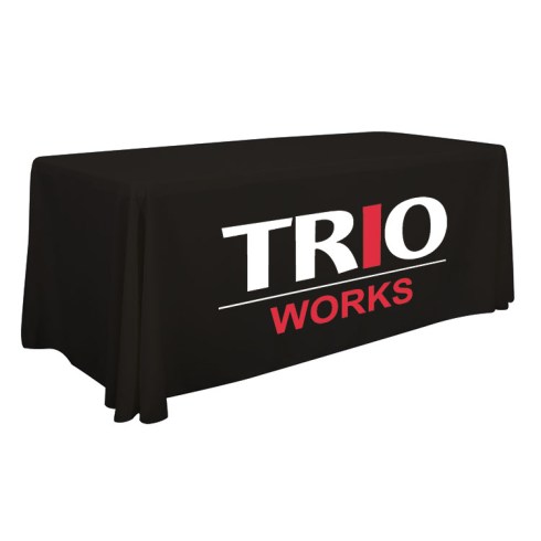 Our most popular table cover offers a simple way to get your message noticed. Covers 4 sides of the table. Flame Retardant, Polyester Poplin fabric. Machine washable and wrinkle resistant. Do not dry clean and do not iron.