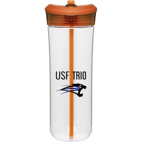 25 oz single wall [BPA-free] Eastman Tritan copolyester bottle with threaded lid, flip-up spout, and matching inner soft straw