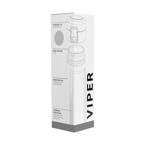 16 oz double wall 18/8 stainless steel thermal tumbler with copper vacuum insulation, threaded one-touch push-button lid, locking mechanism, and color accents – retail gift box included.