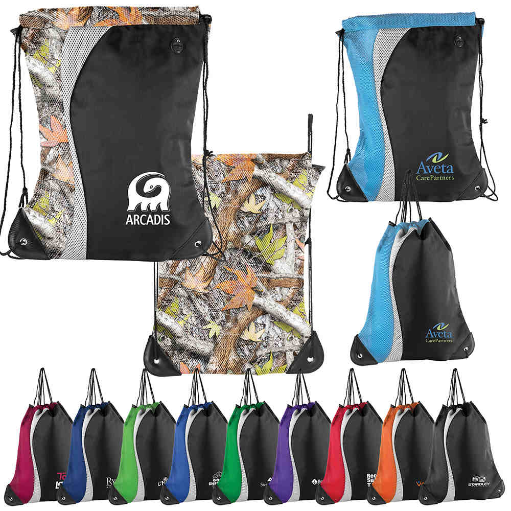 2-TONE CONTOUR SHAPED MICROFIBER AND MESH DAY PACK WITH SILVER ACCENT. OPEN AIR MESH FABRIC BACK; STURDY REINFORCED BOTTOM CORNERS WITH STRONG GROMMET AND CORD DRAWSTRING CONSTRUCTION; RUBBER EAR BUD PORT; HOOK AND LOOP INSIDE POCKET