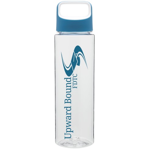 27 oz single wall [BPA-free] Eastman Tritan copolyester bottle with threaded two-tone lid.