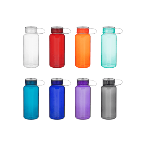 33.8 oz single wall [BPA-free] Eastman Tritan copolyester bottle with threaded lid, stainless steel accent, and braided coated wire carrying loop