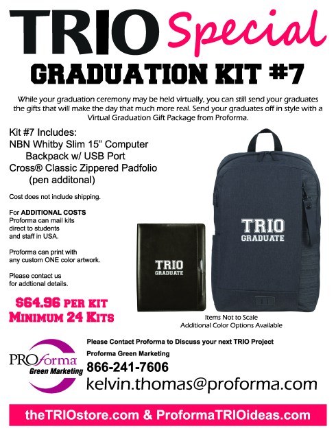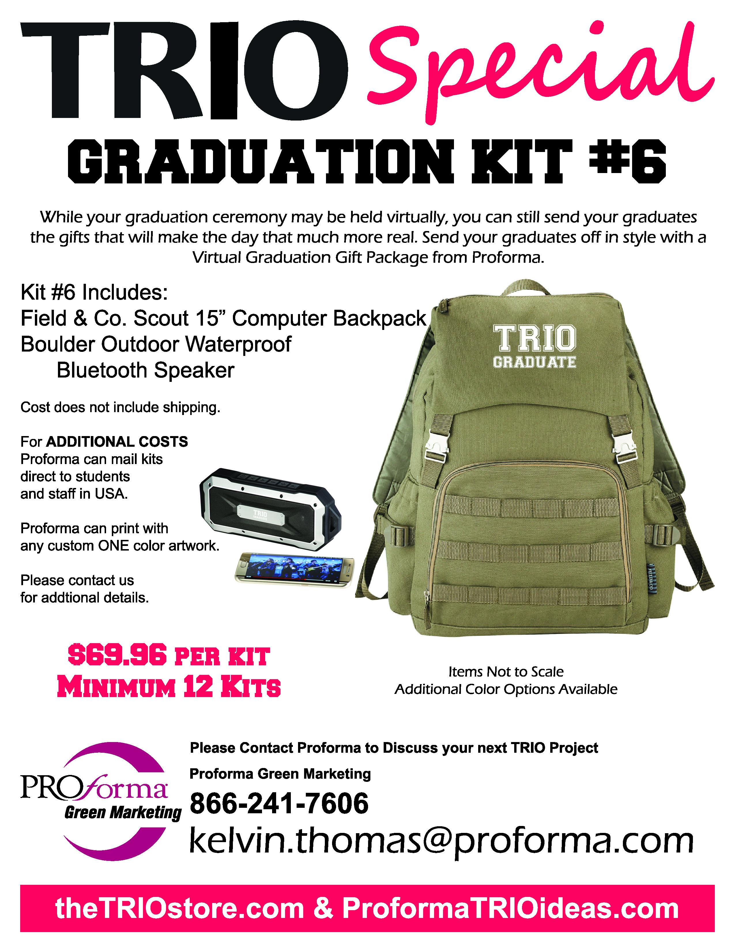 While your graduation ceremony may be held virtually, you can still send your graduates the gifts that will make the day that much more real. Send your graduates off in style with a Virtual Graduation Gift Package from Proforma. For additional cost Proforma can send directly to your students. Proforma can print with any one color artwork. If programs wish to work together to meet minimums, Proforma can help you coordinate.