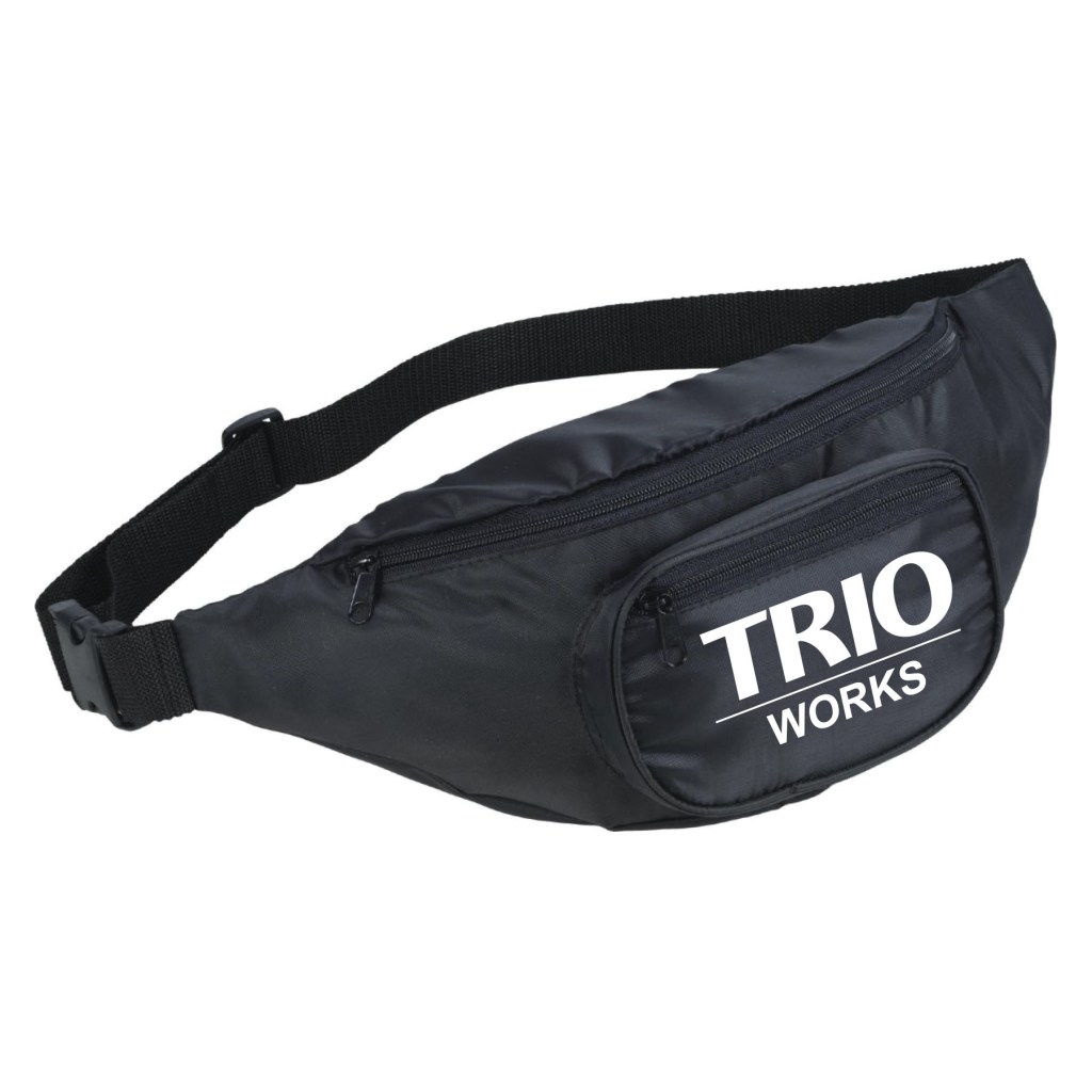 The Hipster Deluxe Fanny Pack lets you be cool on the go with its zippered main compartment, zippered front pocket and a hidden zippered pocket in the back. It also comes with an adjustable waist strap and buckle for a perfect fit. The strap expands to about 47 inches.