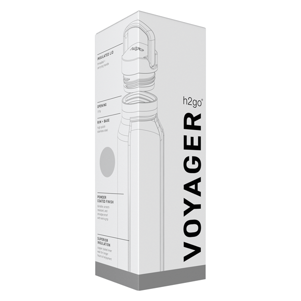 25 oz double wall 18/8 stainless steel thermal bottle with copper vacuum insulation, threaded insulated lid with carrying handle, high polish accent, stainless steel base, and powder coated finish · gift box included.