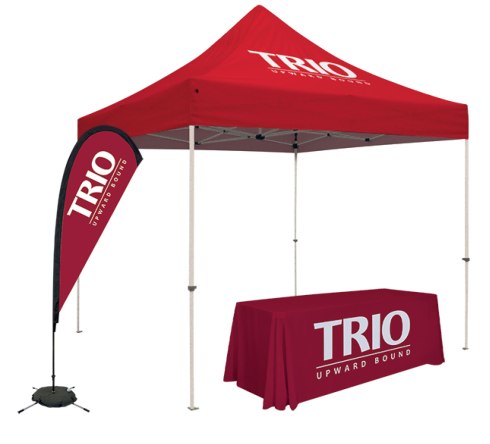 Three item event kit. 6′ Outdoor Fitted Table Throw, 8″ Tear Drop Sail Sign, 10″x10″ Event Tent.