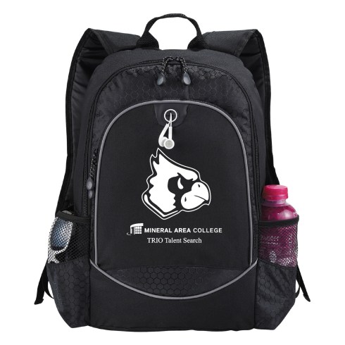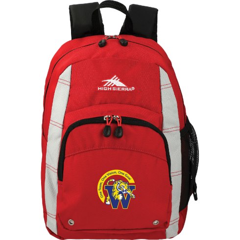 The High Sierra® Impact Backpack features a large front-load main compartment and a portable media player pocket with a molded headphone port. Also features a large gusseted front pocket for accessories, an organizer with pen pockets and a key fob and a contoured, padded shoulder strap with a handy cell phone pocket. Also comes with a padded back panel and grab handle, two silver grommets in the main compartment for air circulation and a mesh water bottle pocket.