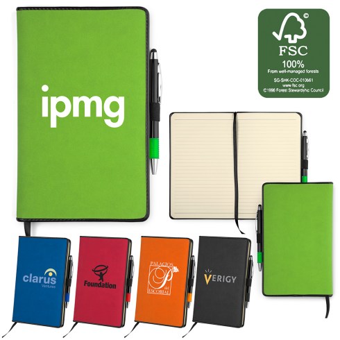 Elastic pen loop. Built-in elastic closure. Stitched cover. Corresponding cover color ribbon page marker. Expandable accordion pocket. Includes 80 sheets of lined paper.