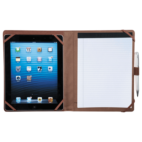 Pedova 10″ Tech Pad Elastic closure. Interior tablet holder accomodates most 10″ tablets including all 10″ iPad models. Scratch-proof lining protects your tablet. Pen loop. Includes 30 sheet writing pad.