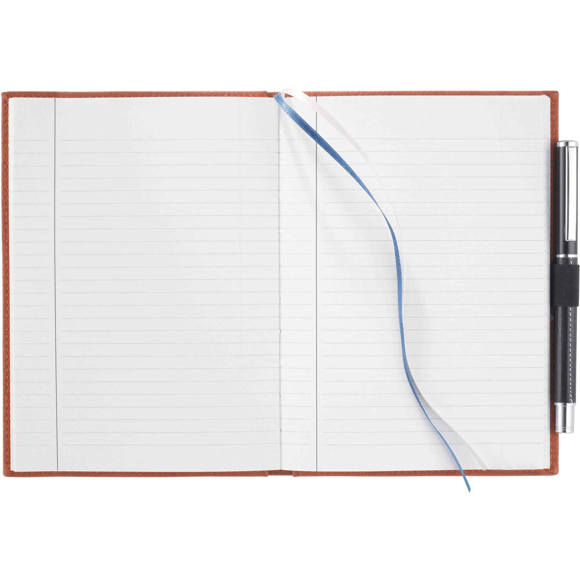 Vicenza Bound JournalBook Elastic pen loop. Blue and silver ribbon page markers. Includes 96 sheets of lined paper.