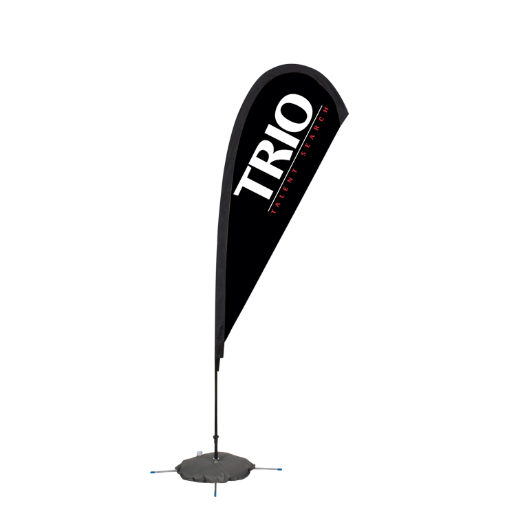 The slightest movement makes these banners flutter, creating motion to attract attention to your message. Featuring high quality, full-color, dye sublimated banners. Available single-sided or double-sided. Kits available with either a ground spike for outdoor use or scissor base with weighted water ballast for indoor/outdoor use.